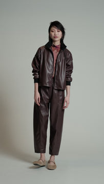 This a baggy pleather pant. It has an elastic waist and front and back side seams with a side patch pocket. I’m pretty sure you don’t have anything like this in your wardrobe. Wear it with a fitted top for a clean look.
